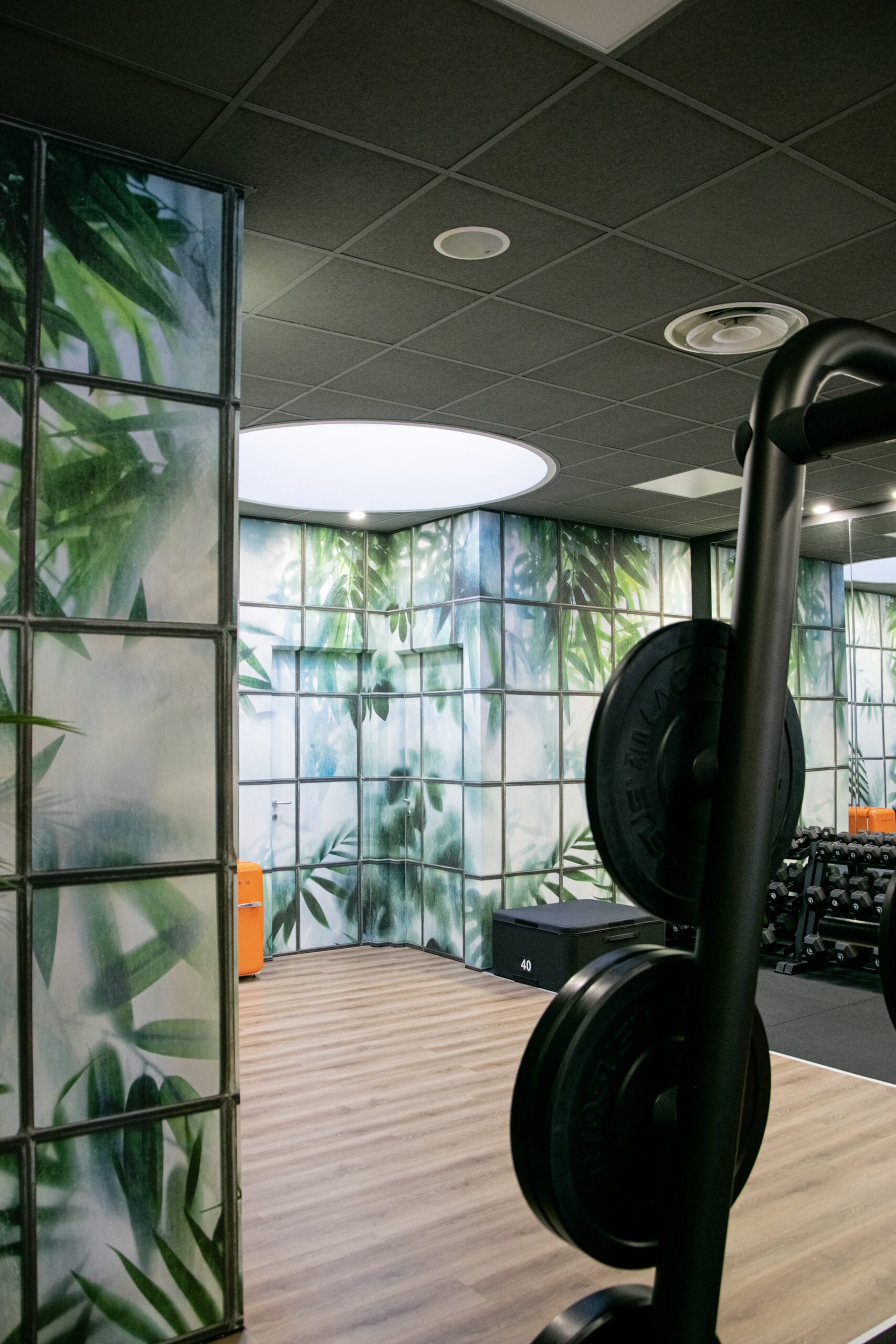 The Serra graphic brightens up fitness environments, Rose et Noir the women’s changing rooms.