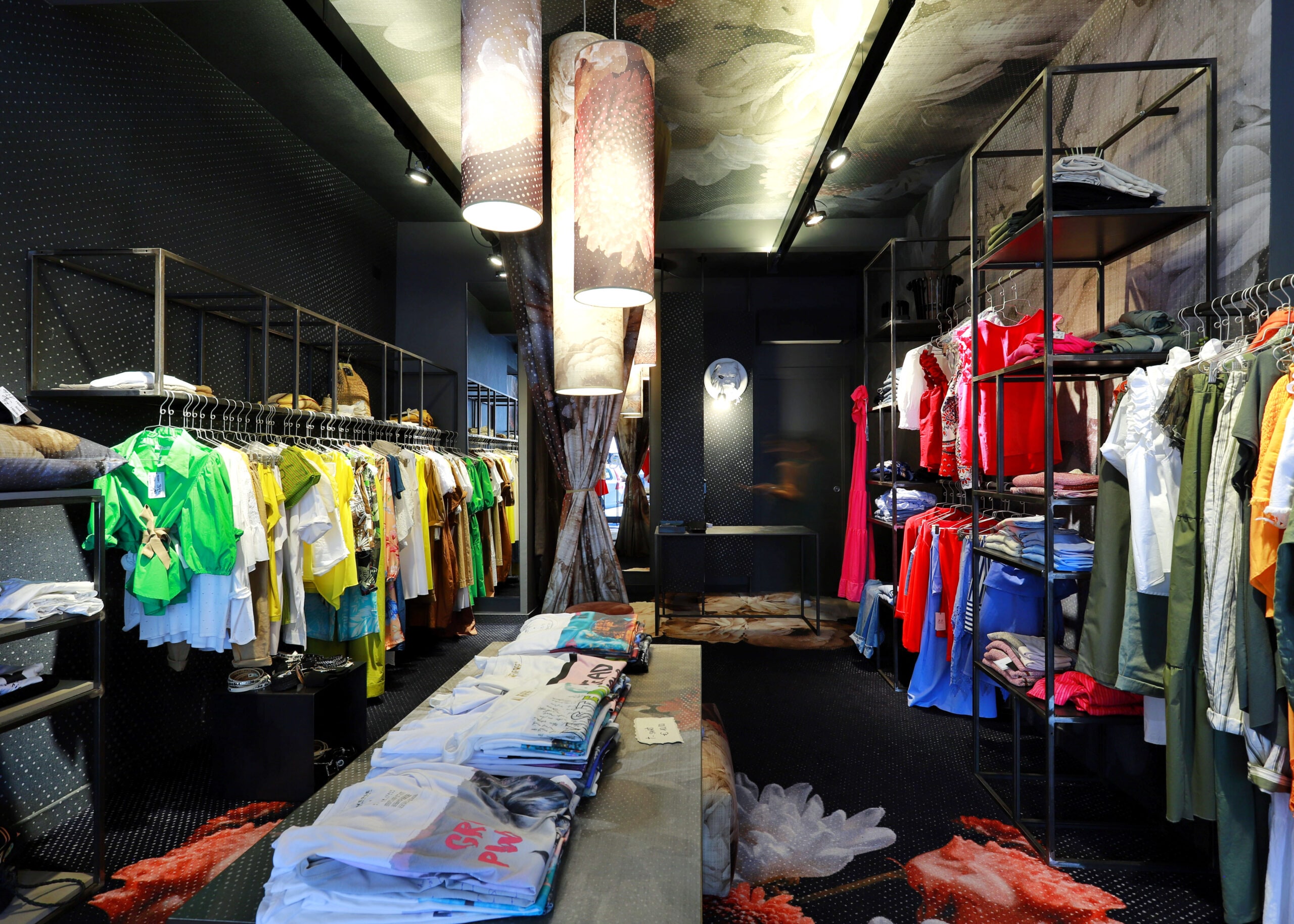 Uno store in cui la moda incontra il design Instabilelab non solo sulle pareti, ma anche sulle tende oscuranti dei camerini, sulle lampade e sulla moquette.